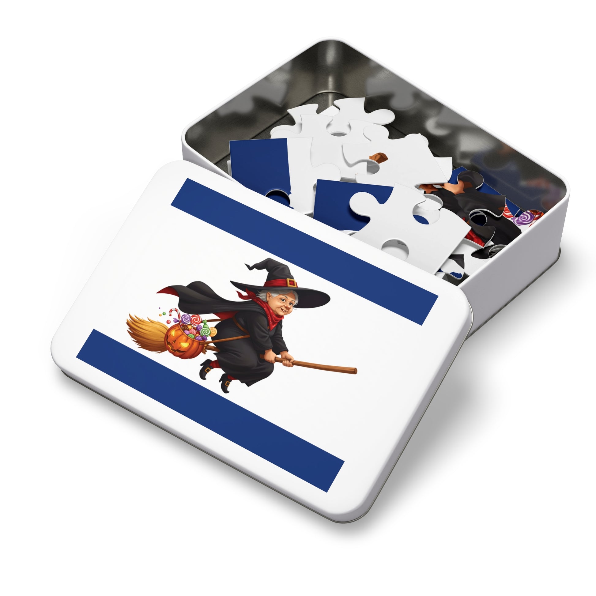Celebrate the spooky season with this delightful Halloween jigsaw puzzle, featuring a cheerful cartoon witch flying on her broomstick, pumpkin candy basket in tow! With vibrant colors and whimsical details, this puzzle is perfect for family fun, seasonal décor, or a thoughtful gift.