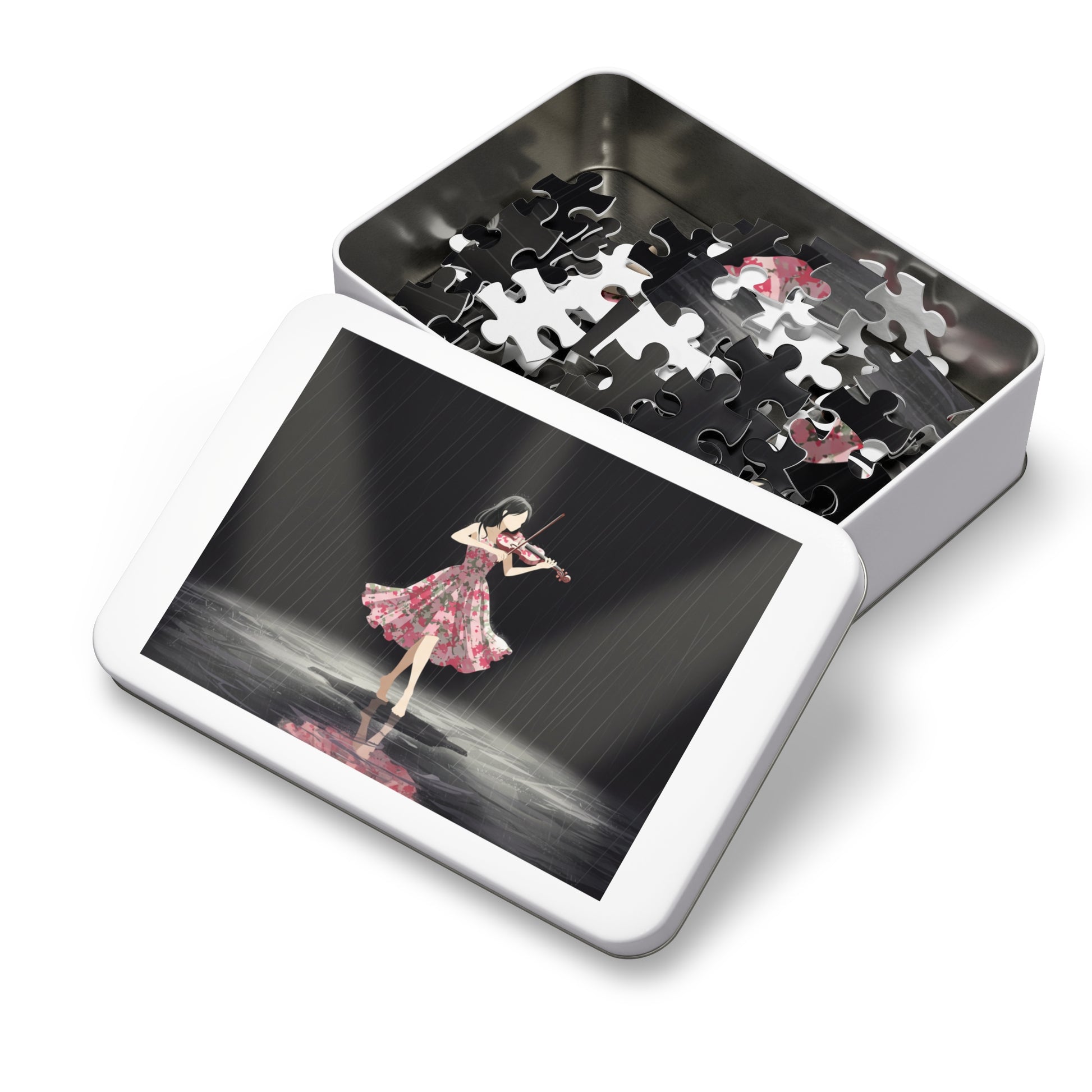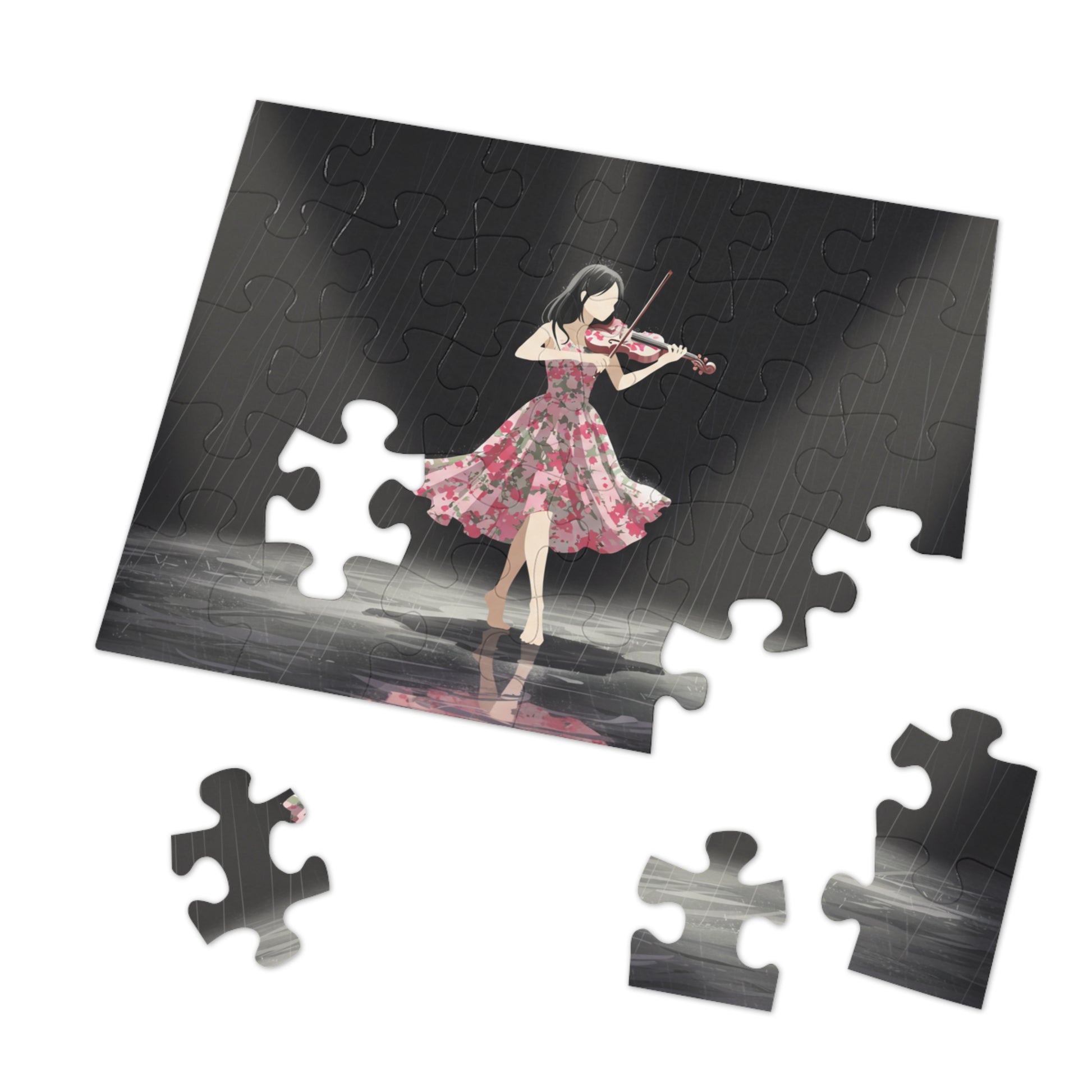 30, 110, 252 pcs Violinist in the Rain Jigsaw Puzzle, Barefoot Violin Player, Artistic Violin Puzzle