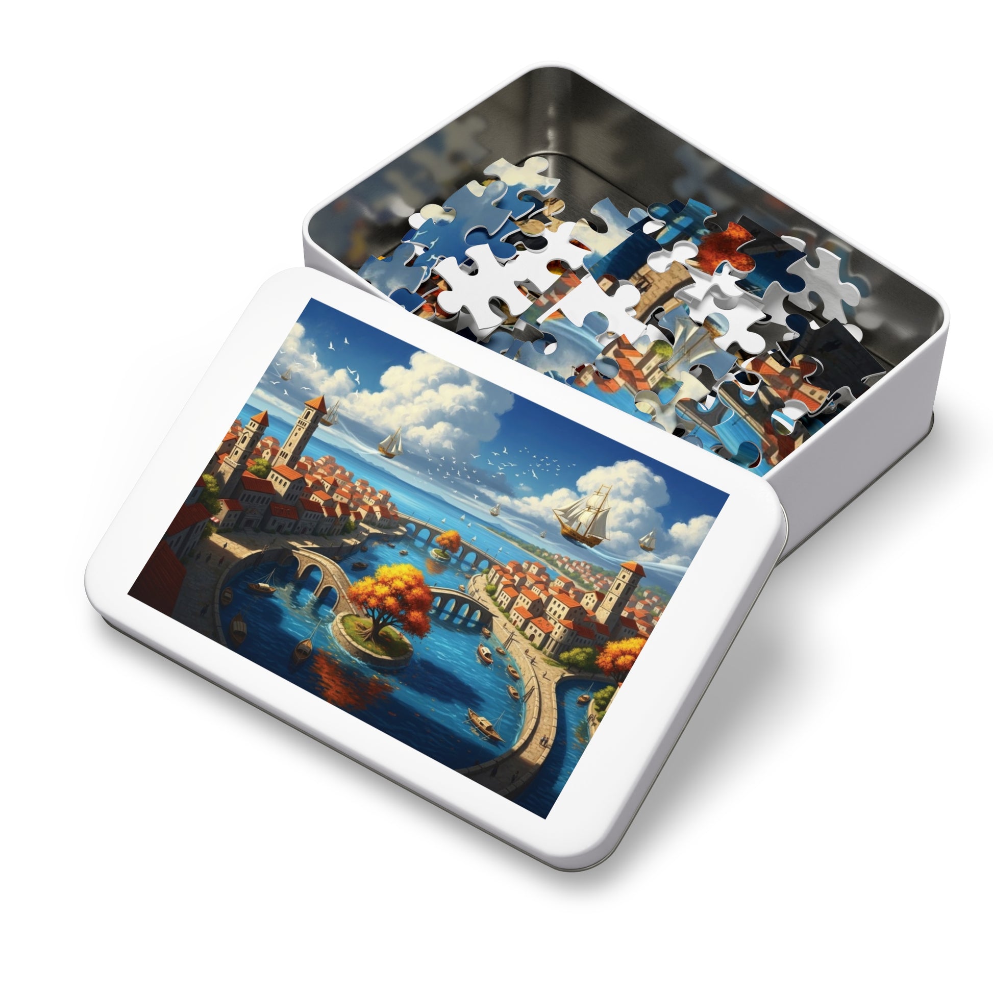 Floating Ships Over the Canal City, Coastal Town, Sailing Ships & Bridge Jigsaw Puzzle ✨