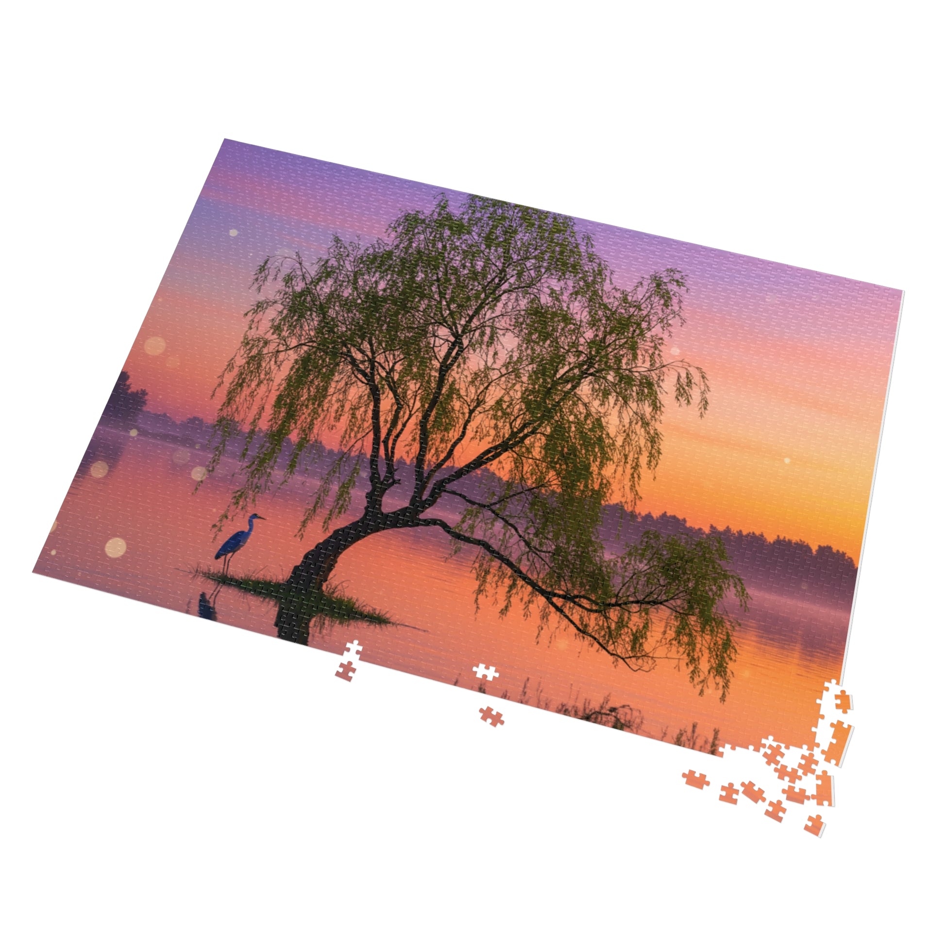 🌅 Product Description – Willow & Heron at Sunset Jigsaw Puzzle